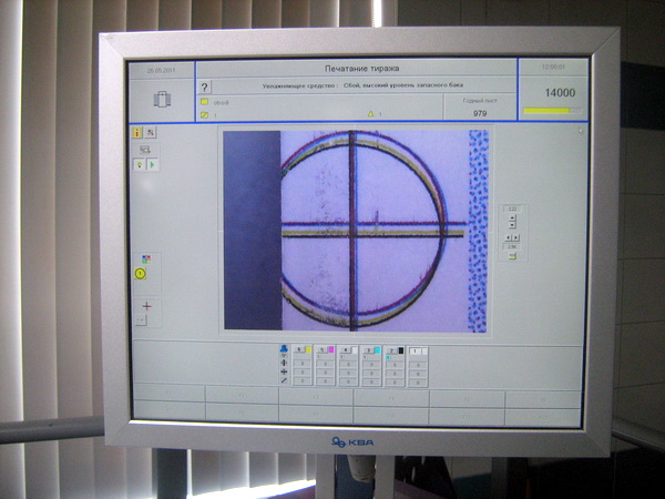 На первый взгляд, событие не заслуживало такого внимания: машина не новая (правда, по внешнему виду этого не скажешь), не последней модификации... Но на самом деле это пример того, что и б/у техника может быть удачным выбором. Машина сделана в 2008 г., и это уже техника поколения Drupa 2008. Например, у нее 35 красочных зон вместо 34. А вот система автоматического совмещения была приобретена «БиДжи» при покупке, первоначально её на машине не было.