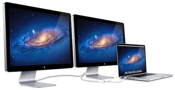 Apple анонсировала 27-дюймовый монитор с технологией высокоскоростной передачи данных (включая видео) Thunderbolt. Скорость двунаправленной передачи данных по двум каналам составляет 10 Гбит/с, что в 20 раз быстрее, чем USB 2.0, и в 12 раз быстрее FireWire 800. Одновременно к дисплею через встроенный компактный порт можно подключать сразу шесть устройств.