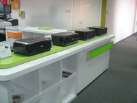 В новом шоу-руме представлена широкая гамма продукции Canon: лазерные ЦПМ, фотопринтеры и струйные широкоформатные принтеры. За кадром остались фото- и видеокамеры, проекторы и прочее
