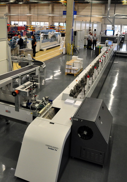 На выставке-конференции Postpress Commercial Information Days в Лейпциге Heidelberg представила решение для послепечатной обработки книг, состоящее из цифровой линии швейцарской Hunkeler и КБС Eurobind Pro. Предполагается, что подобная комбинация позволит переключаться между цифровыми и офсетными тиражами, располагая всего одним устройством клеевого скрепления. В Heidelberg уверены, что скорость (до 6000 цикл./ч), модульный дизайн, открытый интерфейс и быстрота переналадки Eurobind Pro существенно расширяют послепечатный потенциал машины.