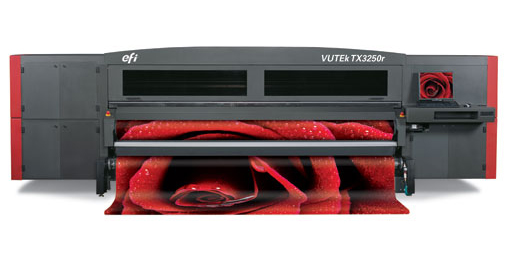 EFI начала отгрузки принтера EFI VUTEk TX3250r (3,2 м) для печати по тканям на базе VUTEk FabriVu, первой промышленной струйной системы EFI для текстиля, анонсированной в 2002 г. Промышленный принтер поддерживает как прямую сублимационную печать по текстилю, так и работу с термотрансферной бумагой, и рассчитан на тех, кто планирует расширение бизнеса по производству гибкой рекламы. Готовую продукцию можно стирать, сушить, складывать без ущерба для качества изображений. Скорость устройства достигает 167 м2/ч, поддерживается печать в 4 и 8 цветов.