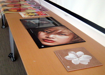 | Внимание гостей привлекли образцы печати на разнообразных материалах: плёнках, бумаге и картоне, ячеистом картоне, плитке и стекле |