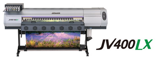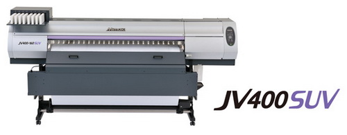 4-красочная модель JV400-130/160SUV печатает со скоростью до 18 м2/ч. Уникальность принтера — в комбинировании гибкости сольвентных чернил и стойкости УФ-отверждаемых благодаря оригинальному составу от Mimaki. В процессе печати сольвентный компонент чернил полностью поглощается верхним слоем запечатываемого материала с закреплением в нём пигмента. После этого чернила проходят УФ-отверждение, обеспечивающее ровную, глянцевую поверхность с эффектом лакирования и яркостью цветов сольвентного принтера. Кроме того, УФ-отверждение повышает стойкость отпечатка к царапинам и воздействию окружающей среды. Отпечатки выходят из принтера полностью сухими, готовыми к дальнейшей обработке.