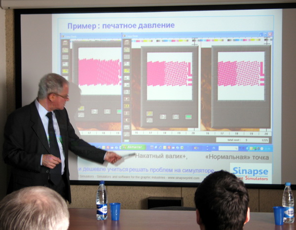 Слушатели семинара проявили живой интерес к системе Sinapse, задавали вопросы о деталях её внедрения. А затем в компьютерном классе увидели работу на симуляторах для офсетной листовой и рулонной, а также флексопечати. наибольшее количество интересующихся привлёк вариант для флексопечати.