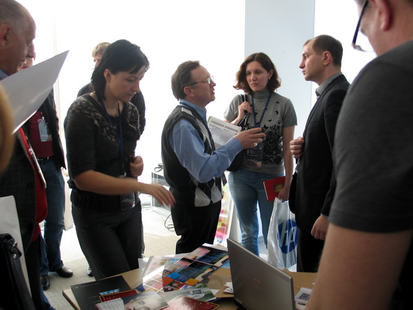 Йорг Кобер, менеджер по маркетингу HP Scitex (Германия и Восточная Европа) рассказал о промышленных широкоформатных принтерах, а Михаил Курочкин и Надежда Медведева — о латексных моделях HP.