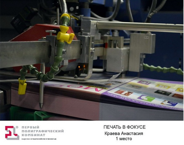 6 июня Первый полиграфический комбинат подвёл итоги открытого конкурса студенческих фоторабот «Печать в фокусе», проходившего с 1 мая по 1 июня среди студентов МГУП им. И.Фёдорова. На протяжении недели на ППК приезжали конкурсанты, для которых была организована экскурсия по производственным цехам с возможностью фотосъёмки. Конкурсантам не ставились ограничения ни по стилистике, ни по тематике итоговых работ, оценивать которые пригласили ведущих представителей издательского рынка России: Sanoma Independent Media, «Семь Дней», Discovery, InStyle, «Эдипресс-Конлига», редакции изданий Publish, PrintDaily и PrintWeek, представителей факультетов МГУП им. И.Фёдорова и др.