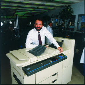 | Бенни Ланда с первым прототипом копировального аппарата Indigo в 1984 г. |